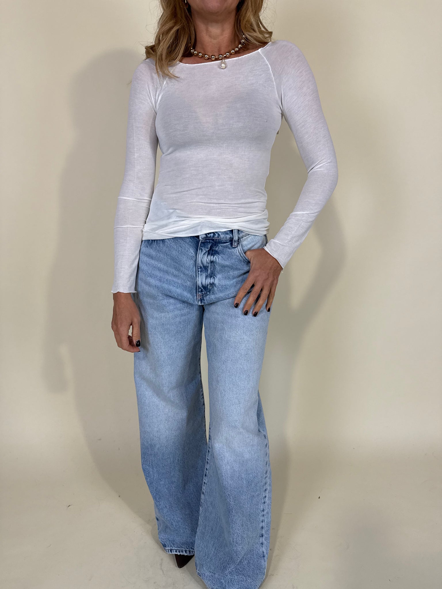 Maglia primo peso sia da sotto sia da indossare da sola in misto cashmere e viscosa. Modello manica lunga con scollo morbido a barchetta. Disponibile nei colori vino, beige, blu notte, nero e moro.