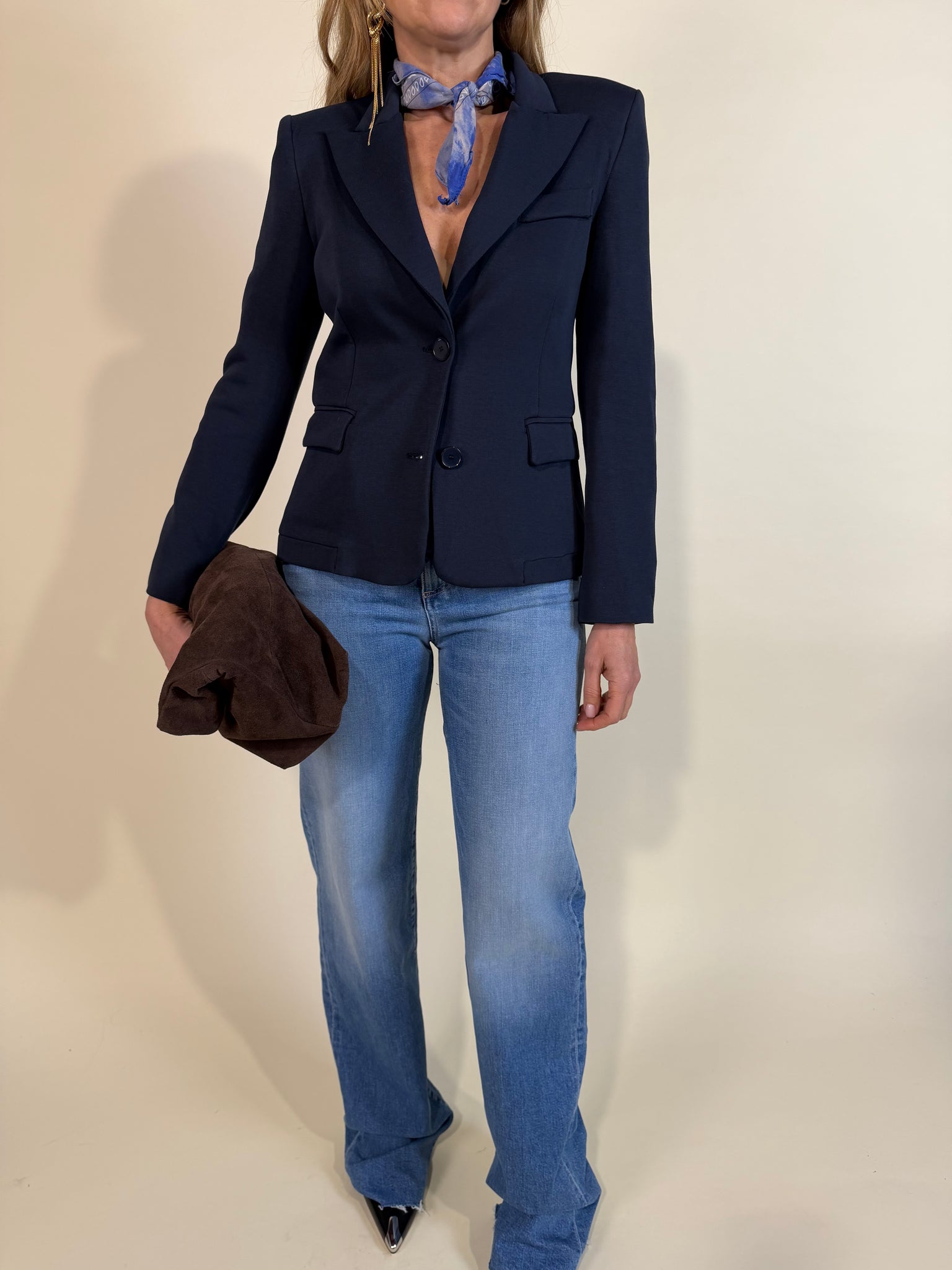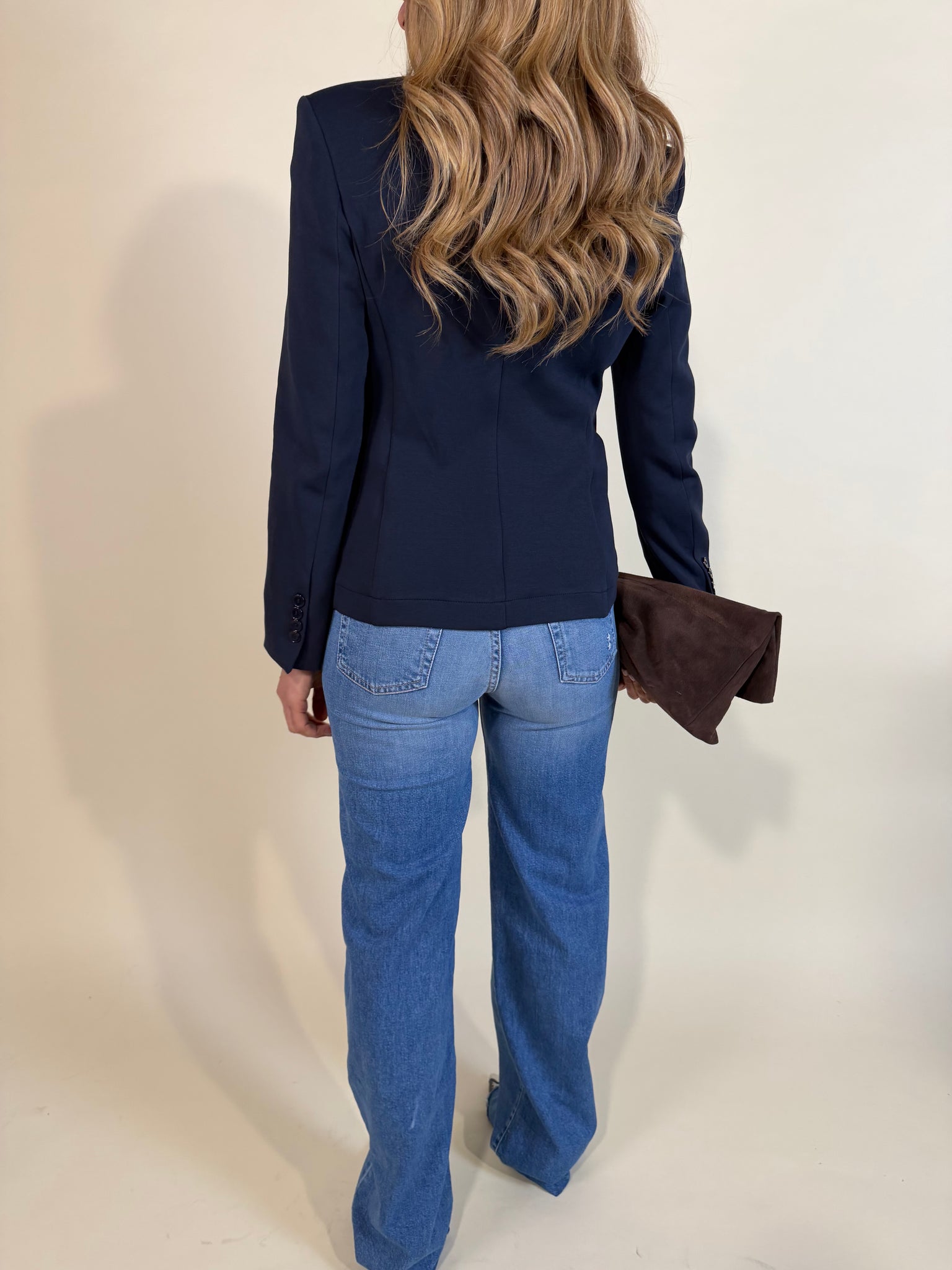 Giacca in misto cotone felpato disponibile nella variante colore unica blu notte. Modello con rever e chiusura monopetto con doppio bottone tono su tono. Modello spalla imbottita e sfiancato. Sfoderato.
