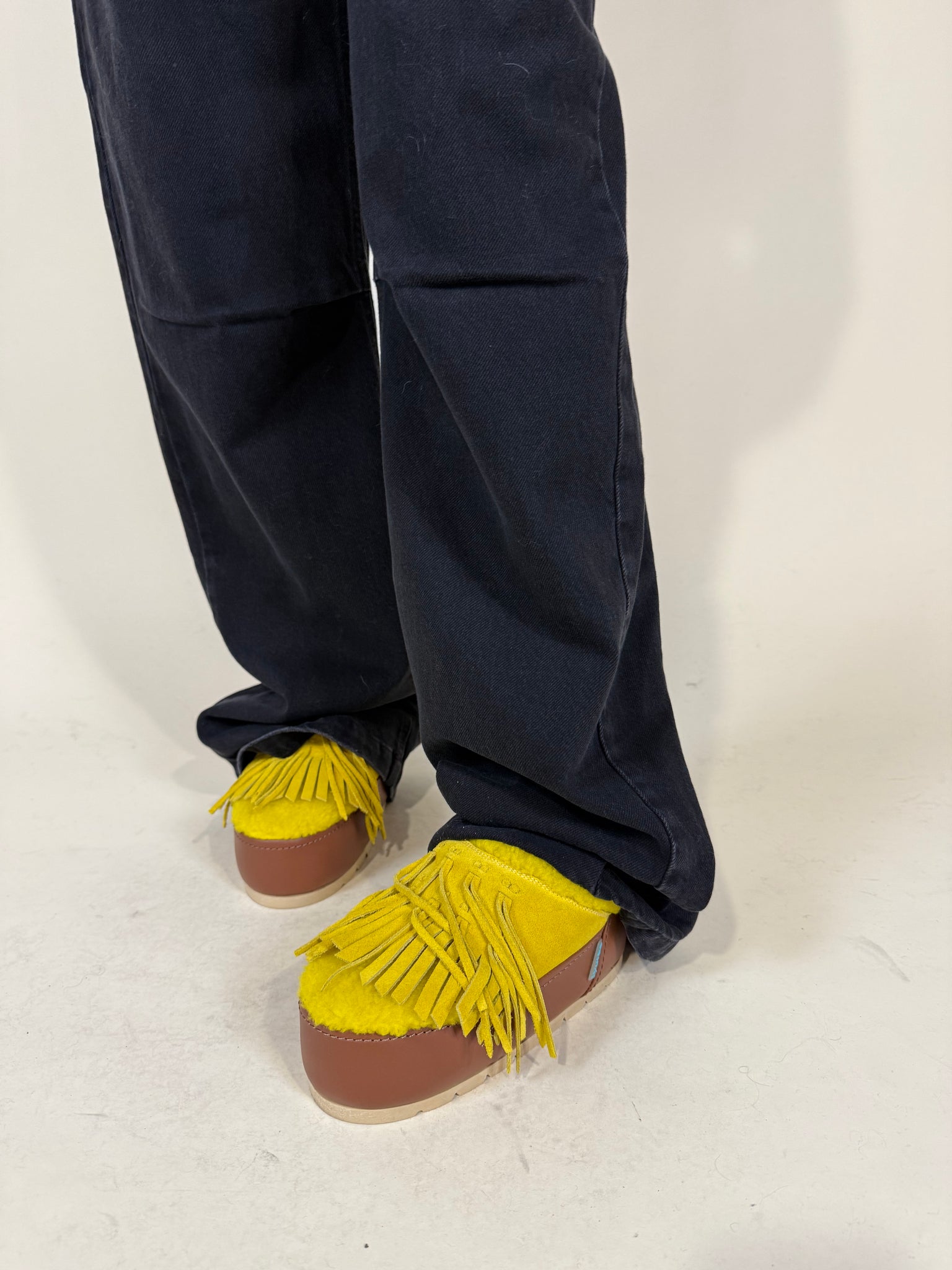 Ciabatta boots disponibile nel colore giallo. Dettaglio frage. Interno in pelo. Suola e parte interna in pelle. Prodotto Made in Italy. Calzata regolare.