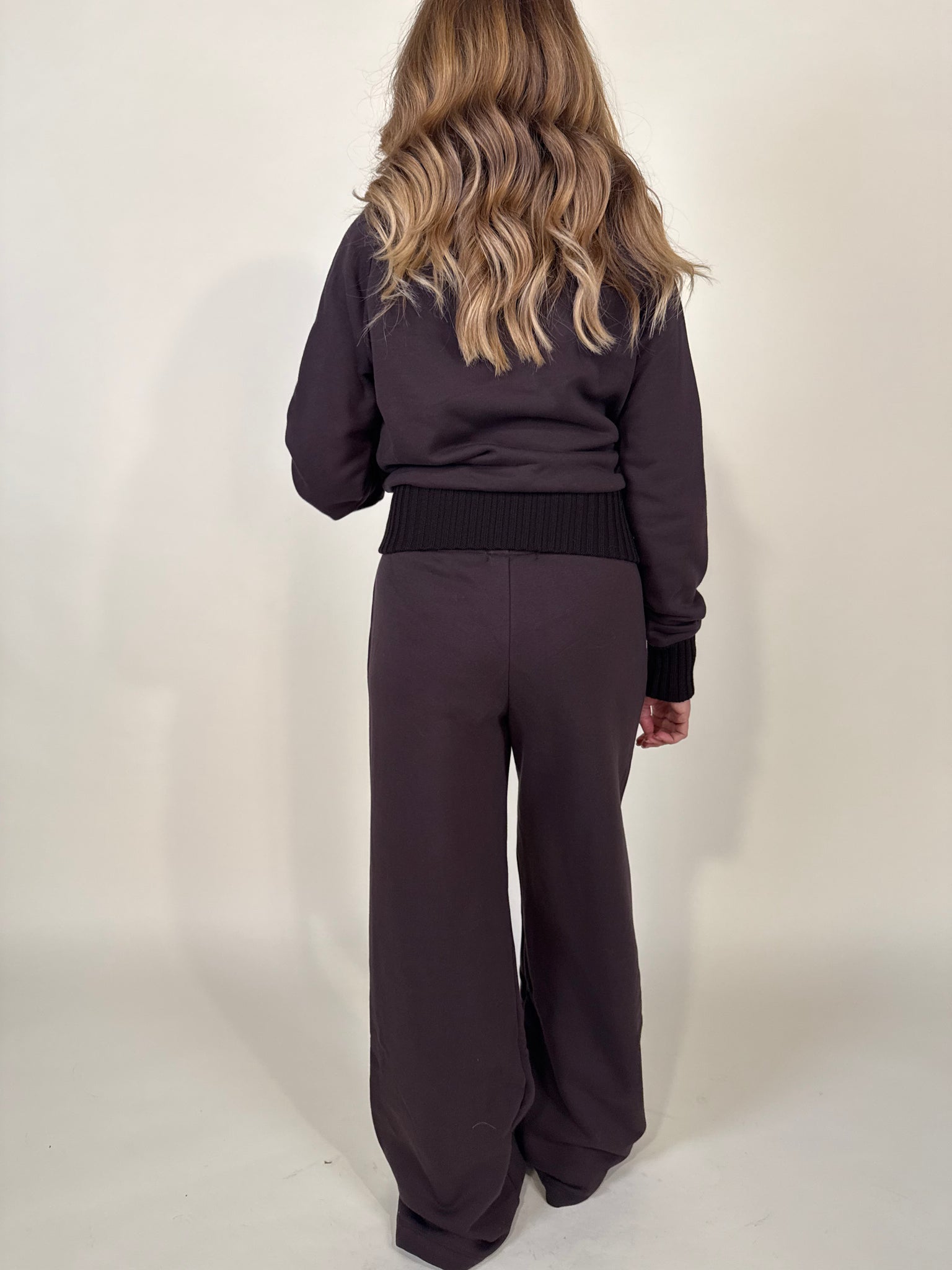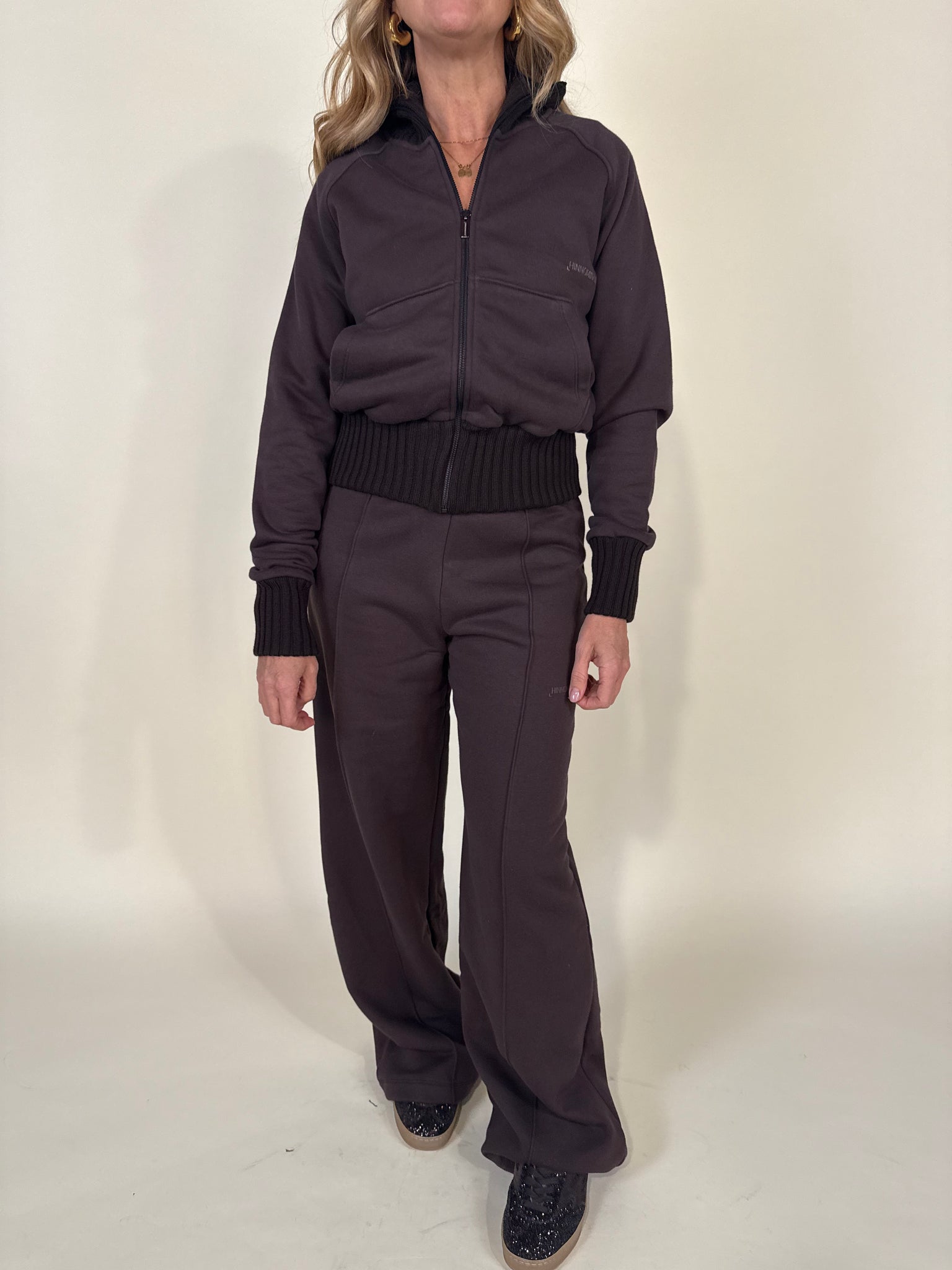 Felpa disponibile nel colore moro. Felpa con cerniera e collo alto con zip inserti in maglia. Tasche laterali. Interno felpato. Tessuto in 90% cotone e altre fibre
