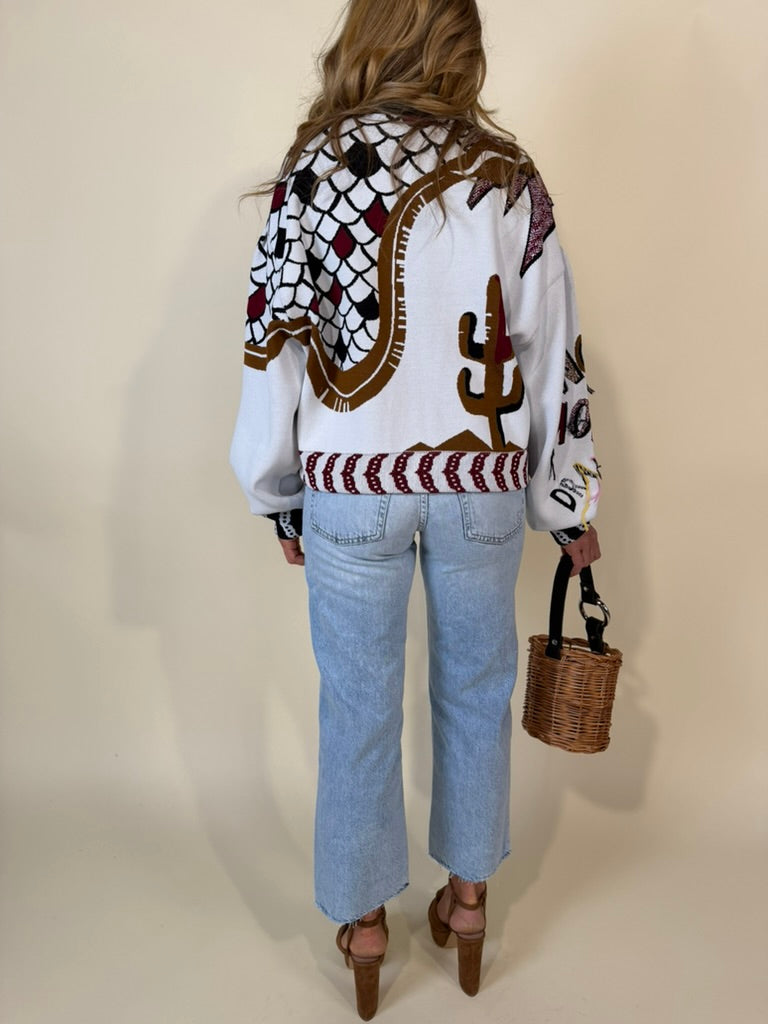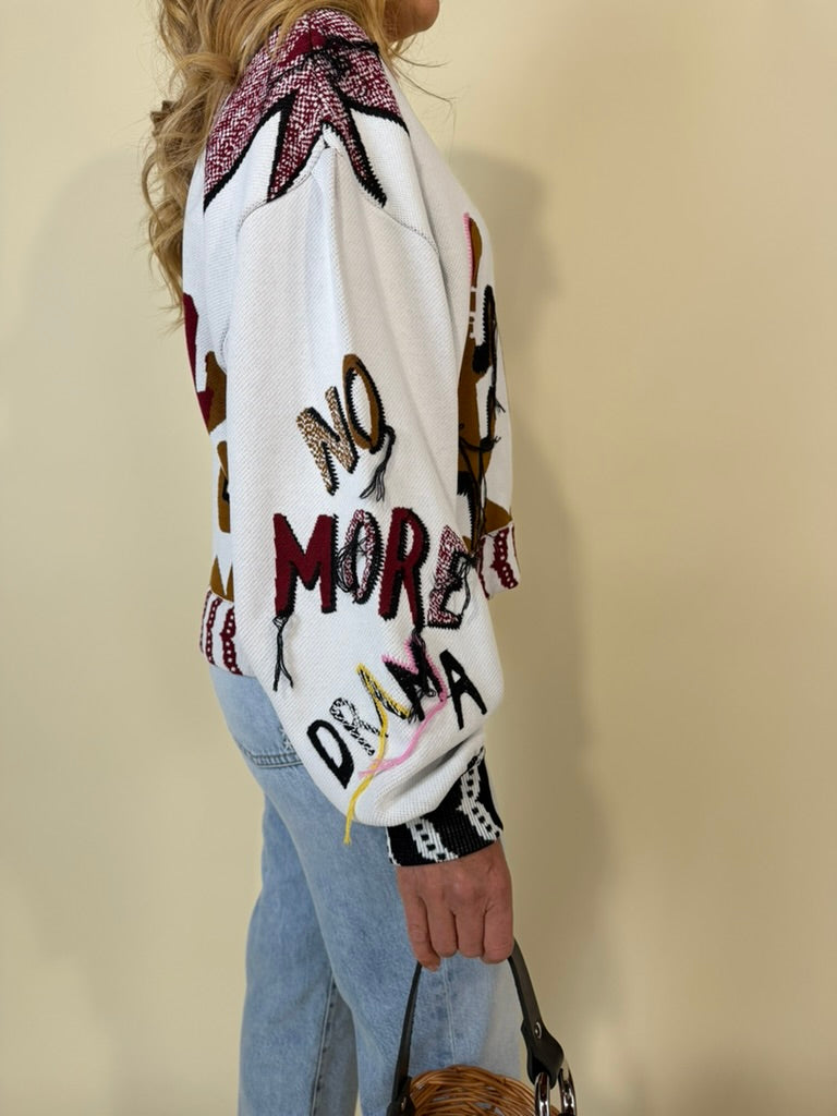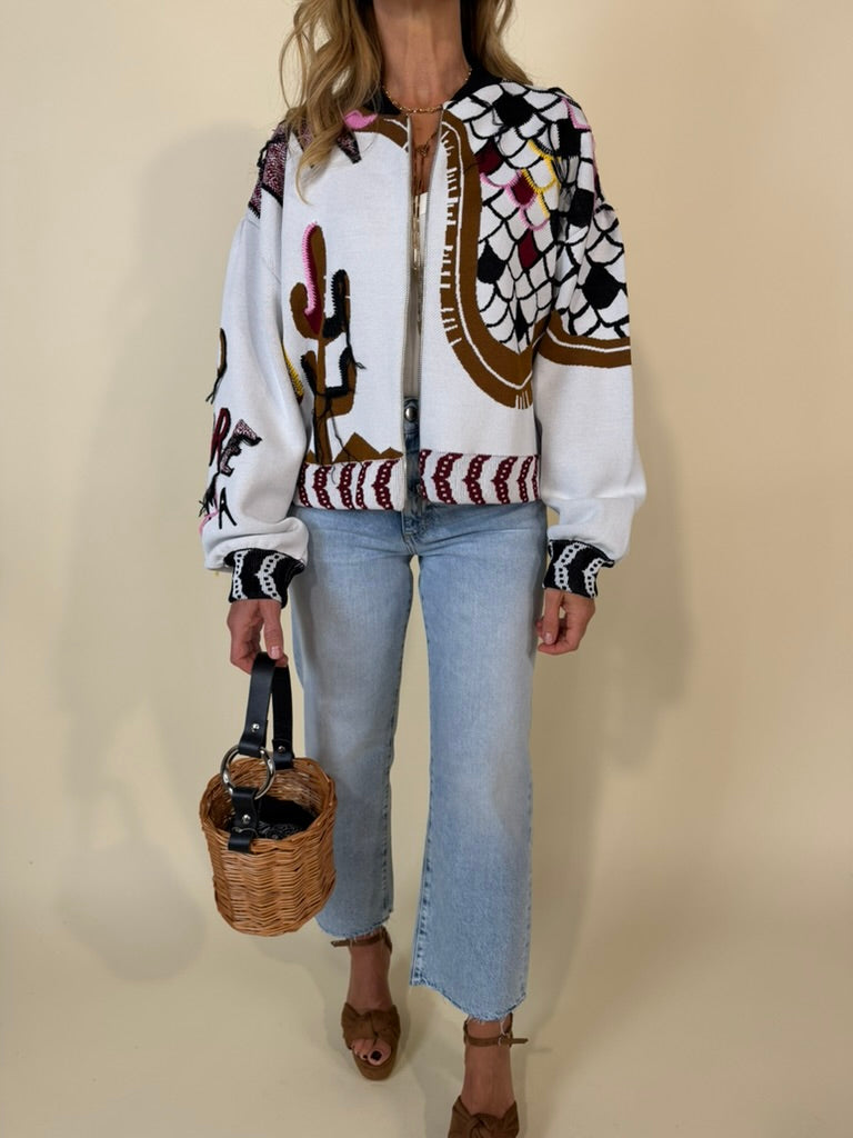 Bomber in misto cotone e viscosa disponibile nella variante unica in trama a fantasia e dettaglio sfrangiatura a colori. Modello oversize con chiusura con zip centrale. Profili ad elastico a dettaglio.