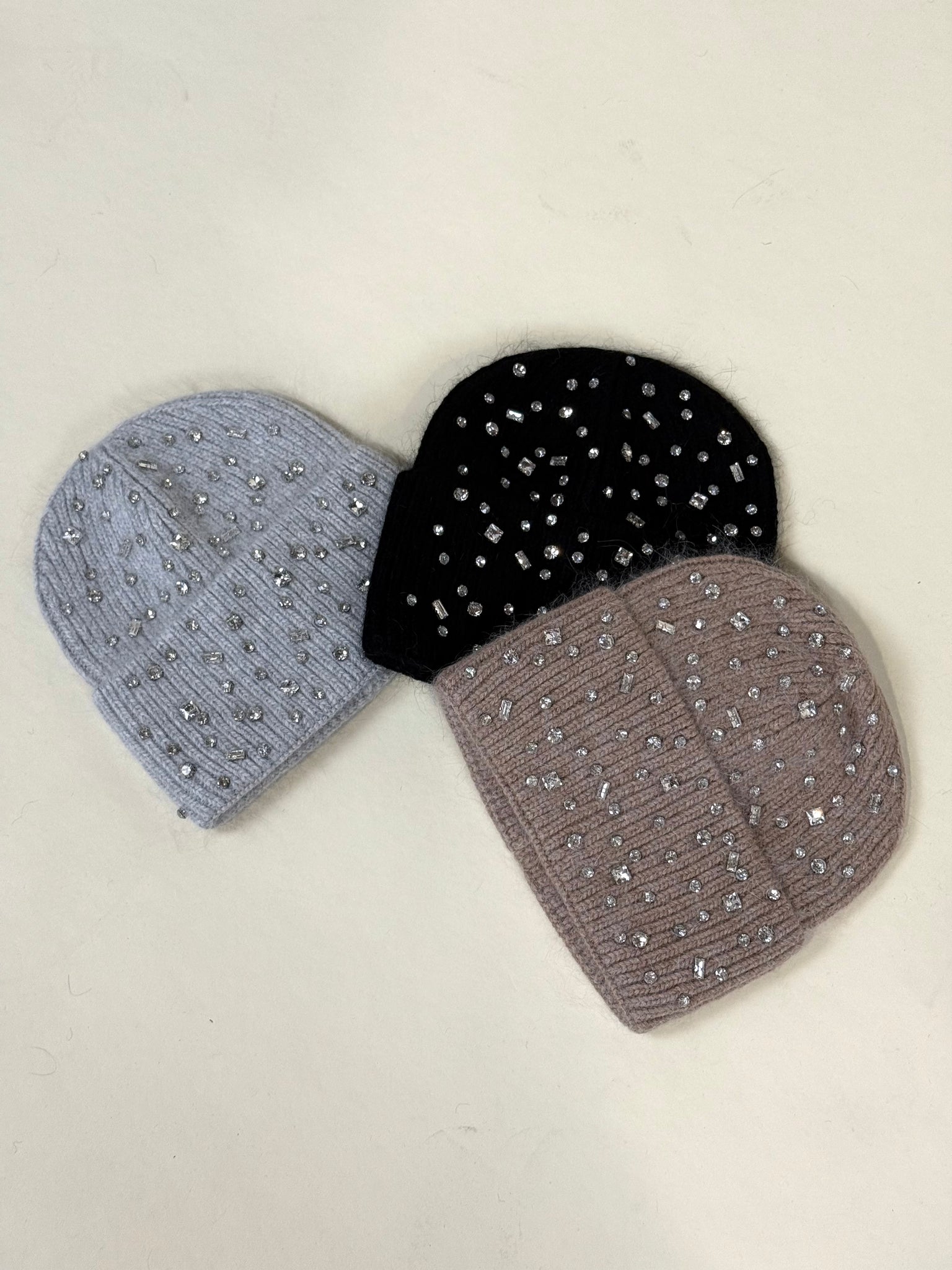 Cuffia a coste con cristalli applicati solo nella parte frontale