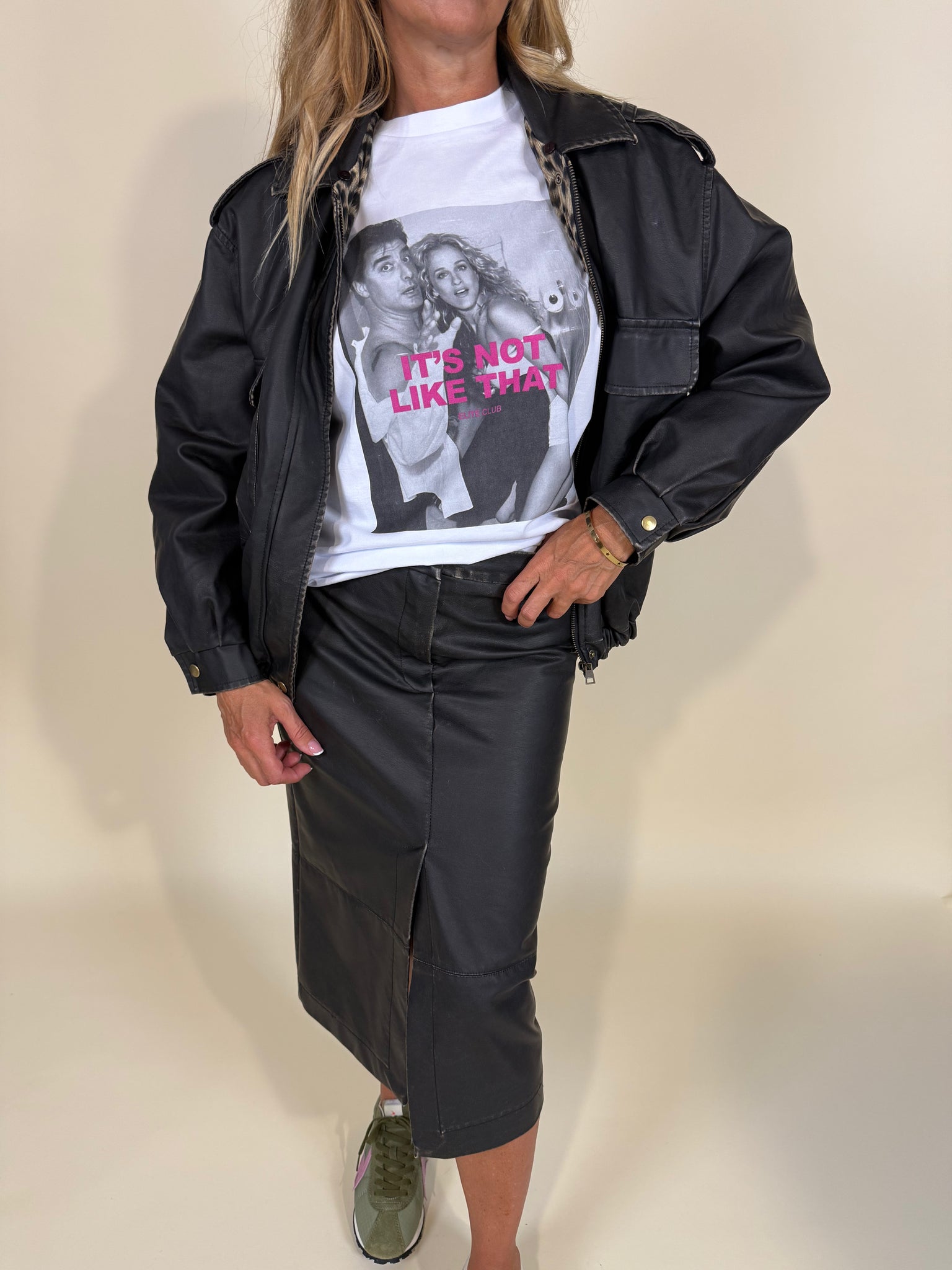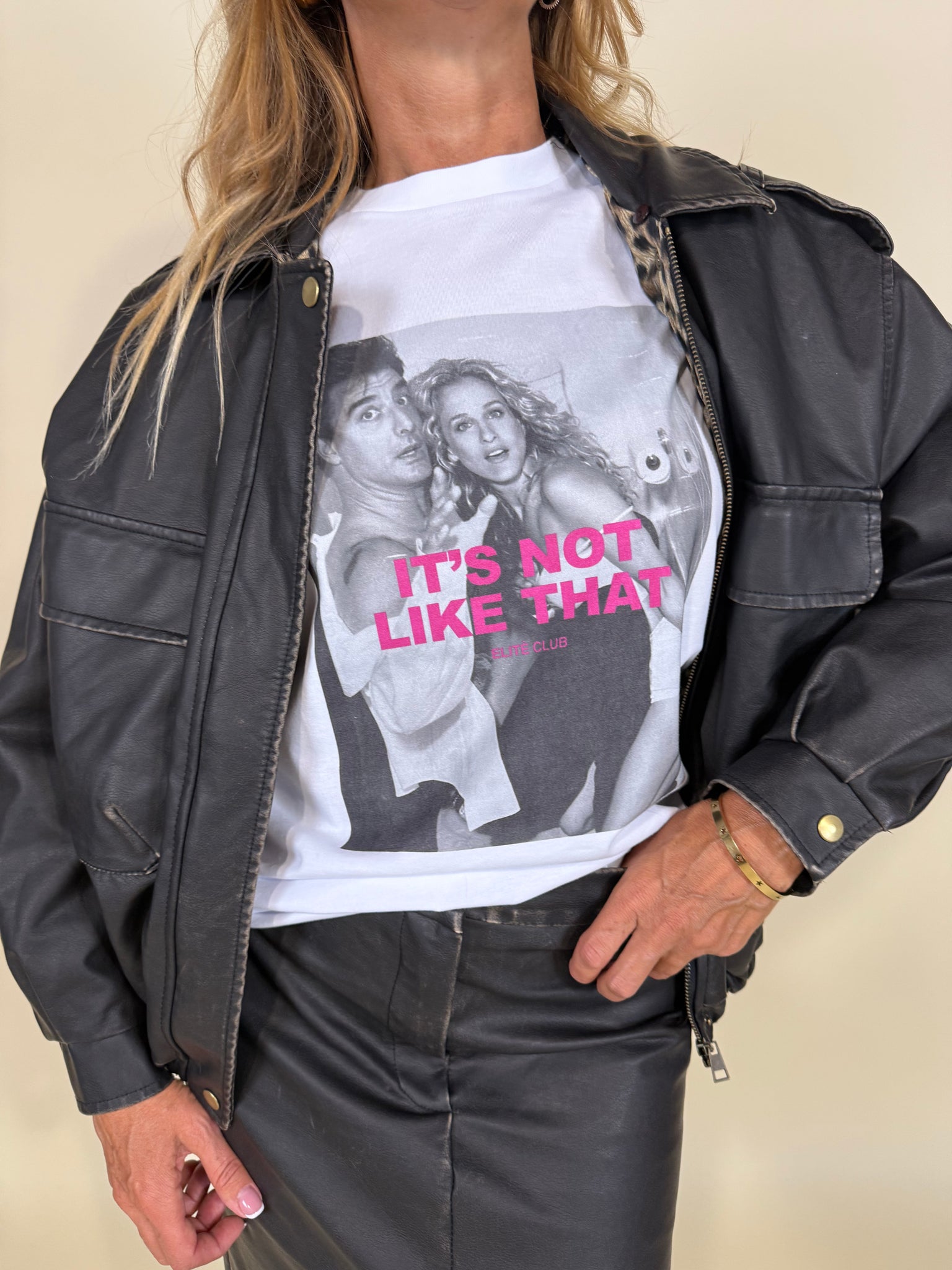T shirt iconica "IT'S NOT LIKE THAT" disponibile nel colore bianco. T shirt girocollo in 100% cotone. Stampa sulla parte frontale