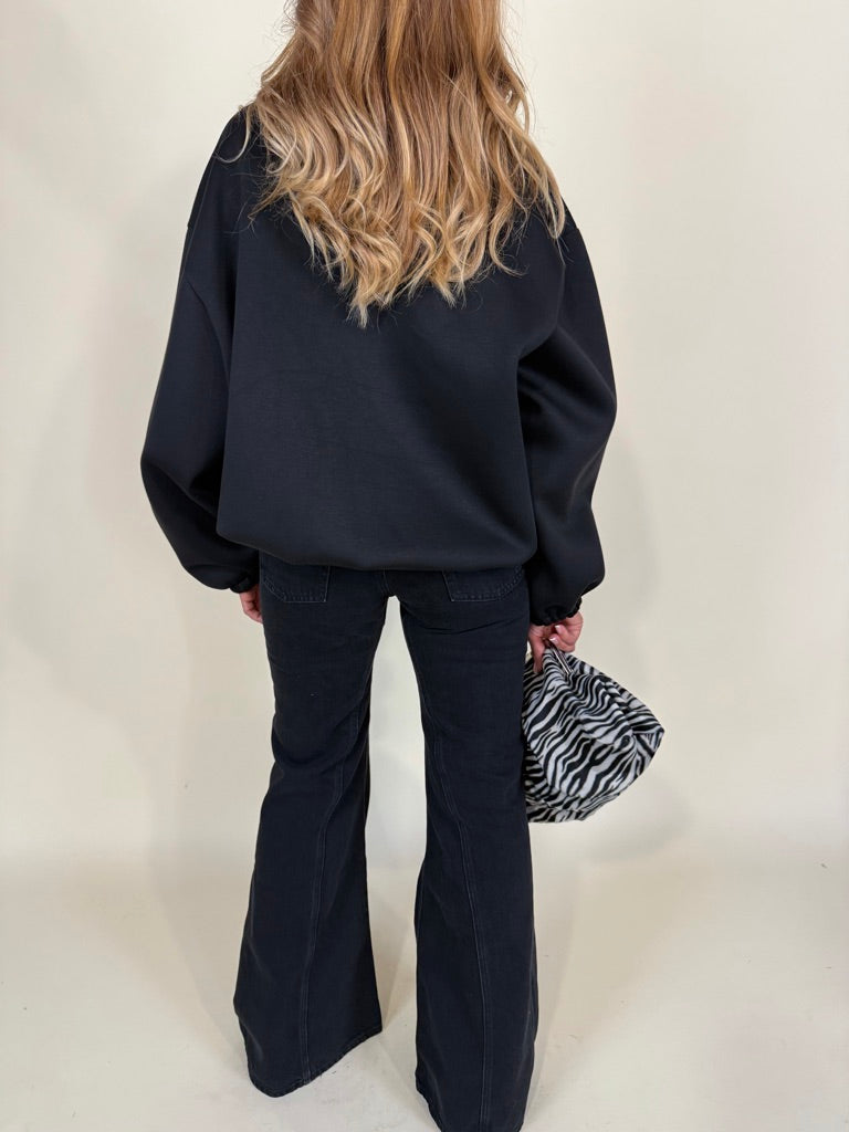 Bomber disponibile nella variante colore unica nera modello neoprene con chiusura a zip centrale tono su tono. Dettaglio tasche a cucitura applicate laterali. Dettaglio arricciatura sul fondo con lacci.. Fondo polsino ad elastico.