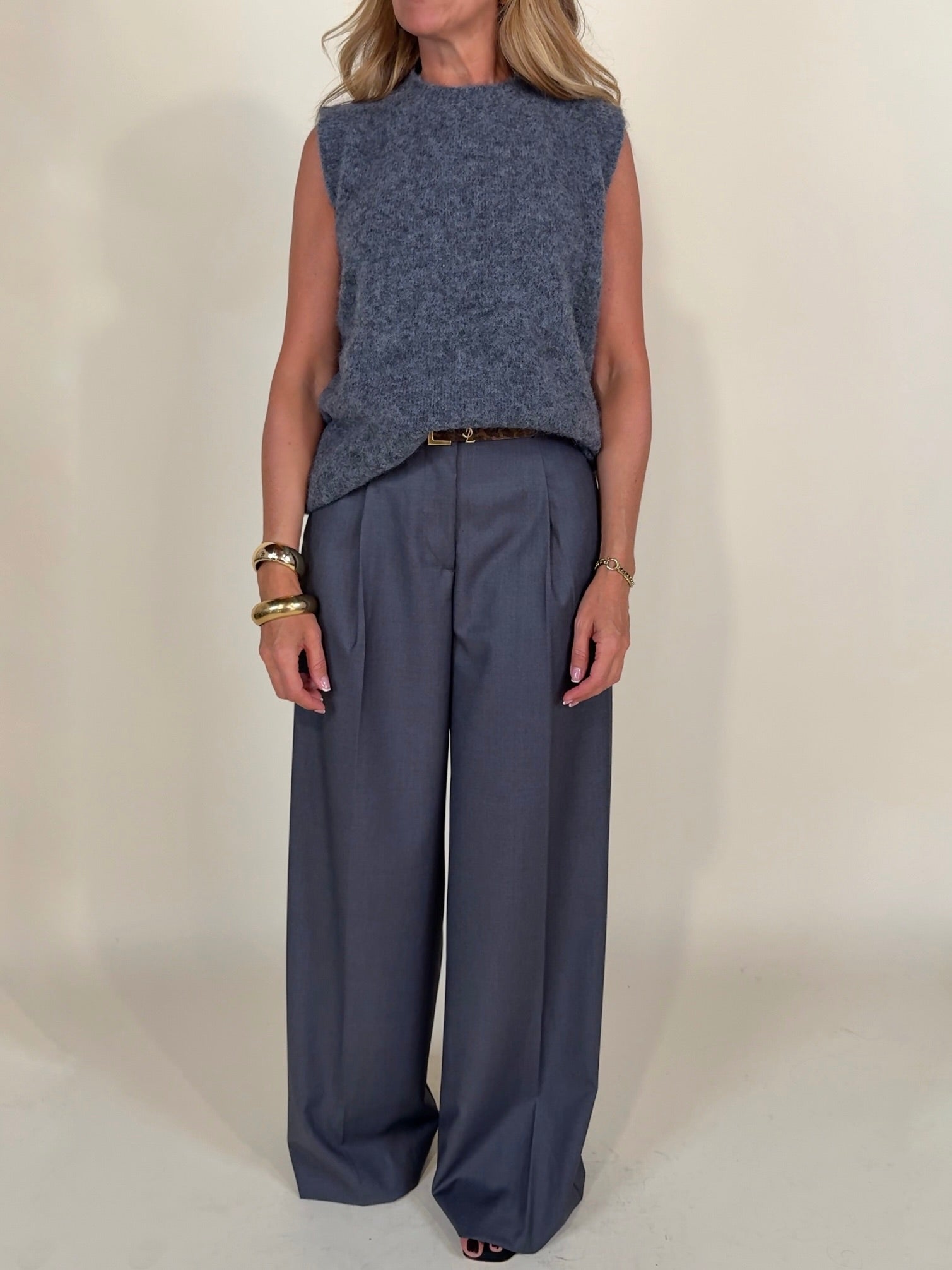 Pantalone dritto a uomo nella variante colore grigia antracite. Modello con gamba larga. Taschine taglio classico a cucitura sul retro. Chiusura frontale. Vita con passanti e elastico sul retro.