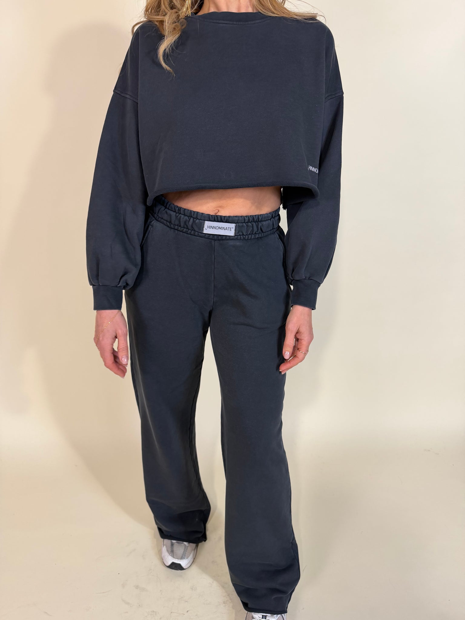 Felpa modello corto crop con fondo a taglio a vivo disponibile nella variante colore unica grigio antracite. Modello paricollo con manica lunga. Modello garzato. Dettaglio logo sul fondo.