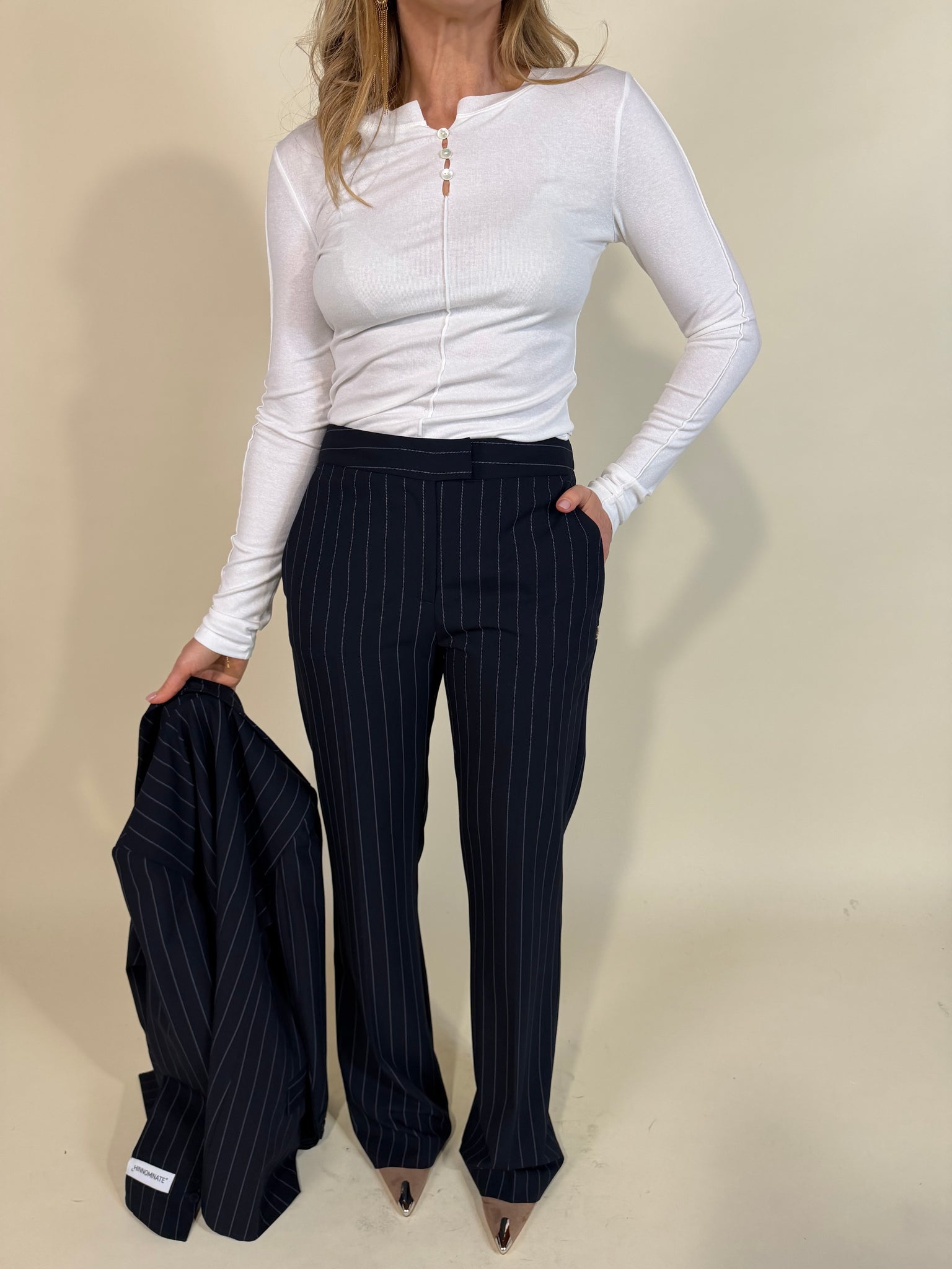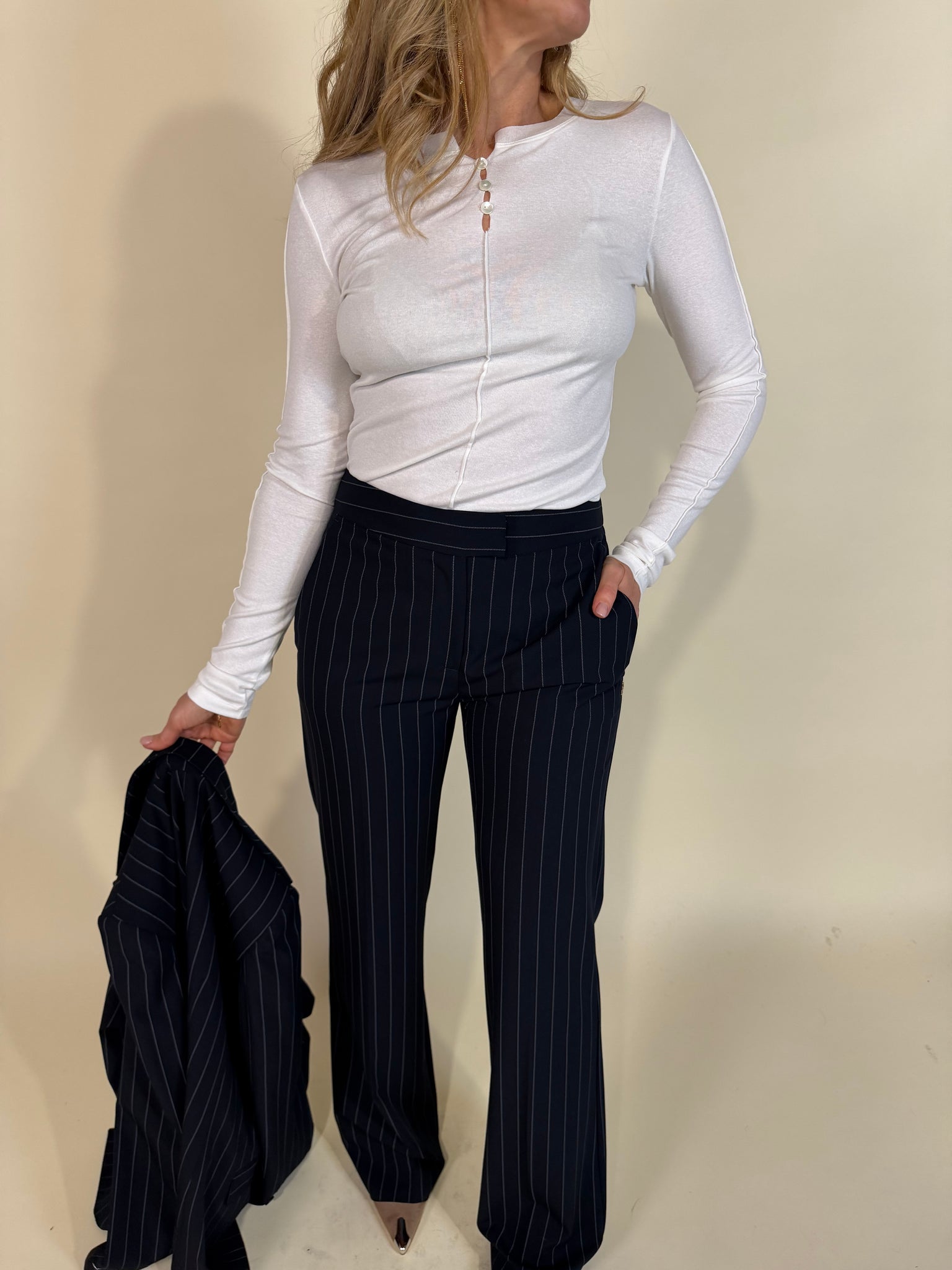 Maglia modello manica lunga disponibile nella variante colore bianco gesso con dettaglio maglia a polo con bottoncini tono su tono. Dettaglio cucitura centrale a vista tono su tono.