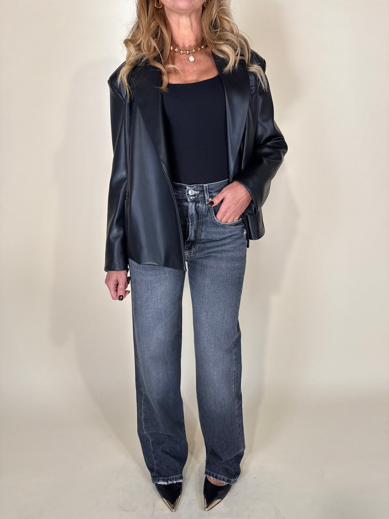 Denim modello straight disponibile nella variante colore grigia slavata. Dettaglio rotture a tessuto. Modello cinque tasche con chiusura con zip e bottone unico centrale.