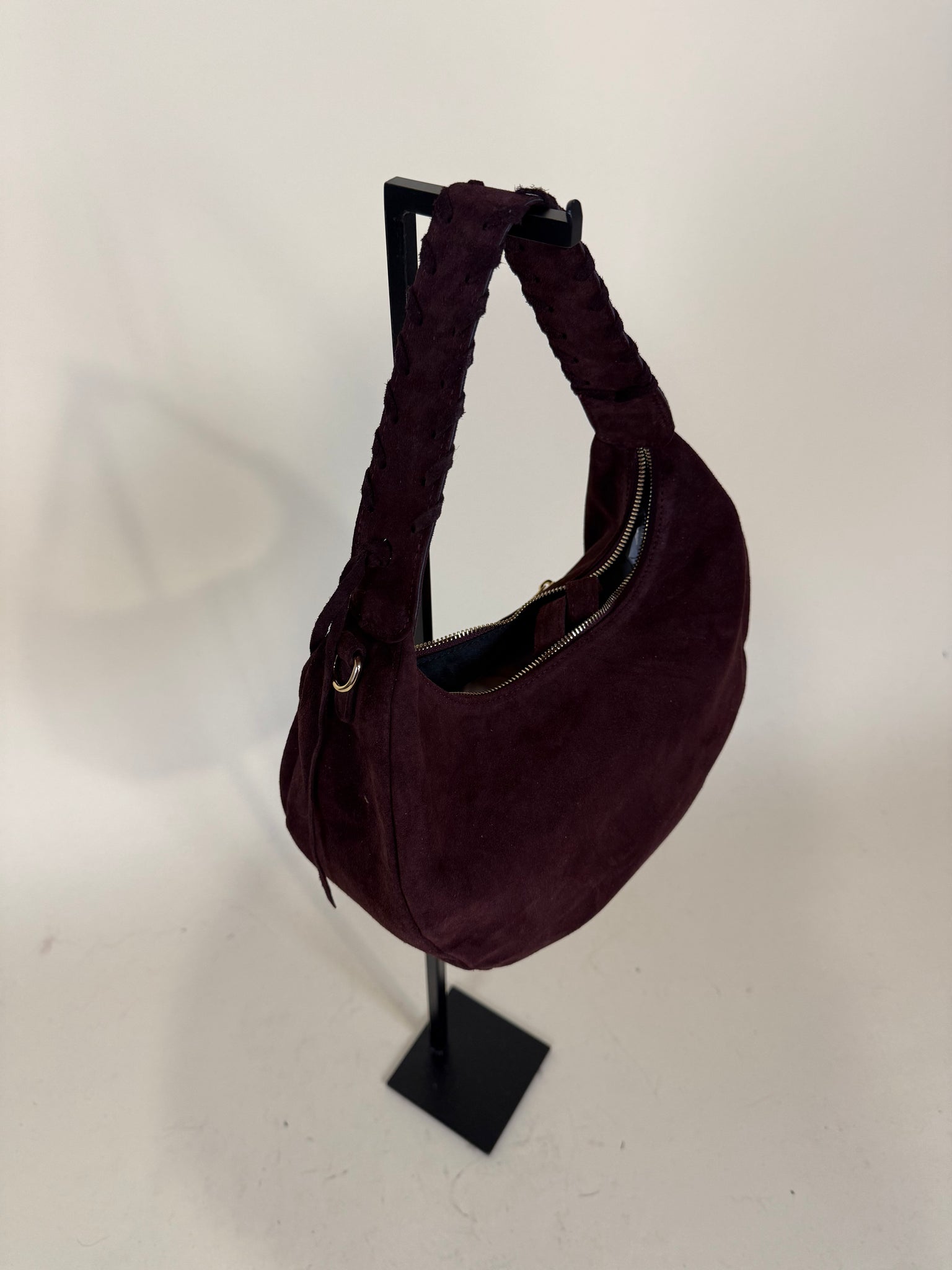 Borsa media disponibile nel colore ciliegia e moro. Borsa con chiusura cerniera oro e dettaglio manico intrecciato.